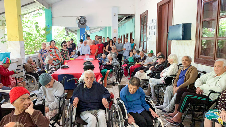 Os idosos do Lar São Vicente, sob direção das Irmãs Eliene e Lúcia, embora sofridos com a morte da acolhida Eli, foram confortados e abraçados, pelo bispo e pelos jovens, que cantaram canções populares e religiosas para eles.