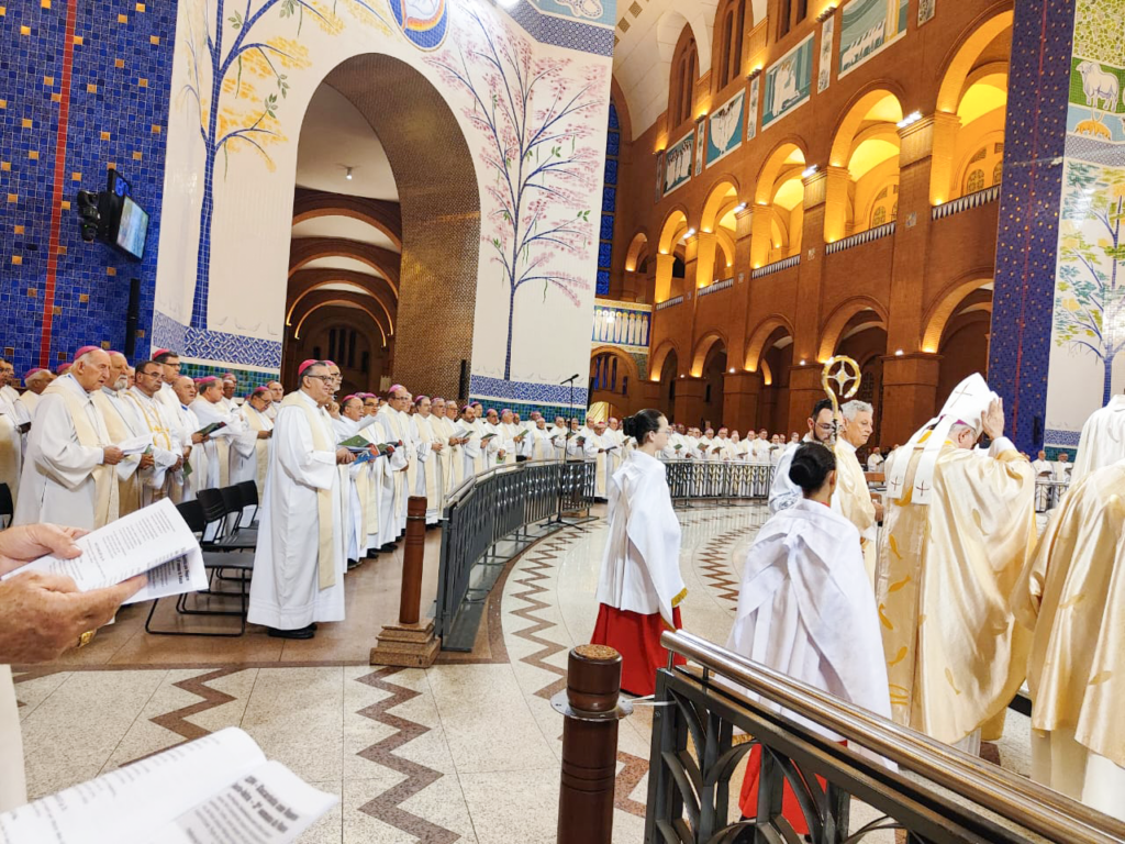 As atividades do oitavo dia foram concluídas com a celebração da Eucaristia no Santuário Nacional de Nossa Senhora Aparecida, presidida pelo Núncio Apostólico no Brasil, Dom Giambattista Diquattro. Em sua homilia, o Núncio reforçou a importância da unidade episcopal e da missão evangelizadora da Igreja no Brasil.