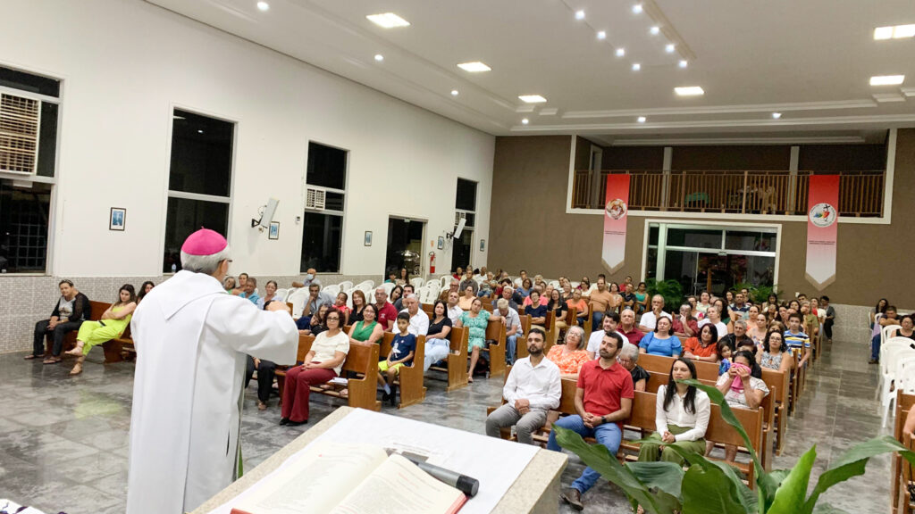A visita foi coroada com a Santa Missa das 19h, um momento de ação de graças onde tivemos a alegria de homenagear os dedicados catequistas, pilares fundamentais na transmissão da fé.