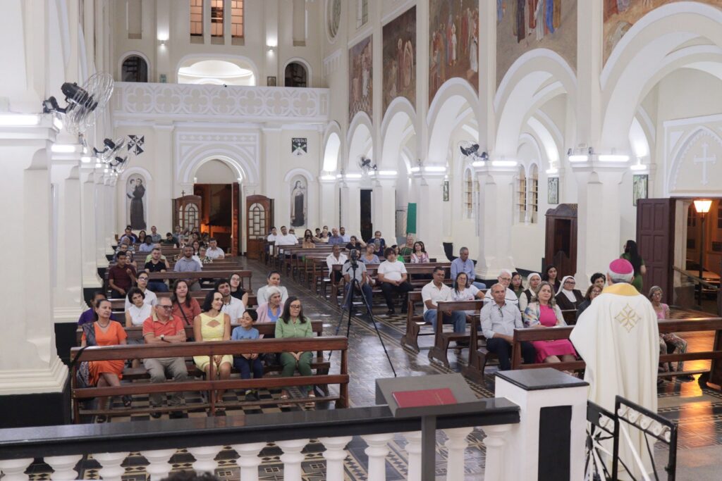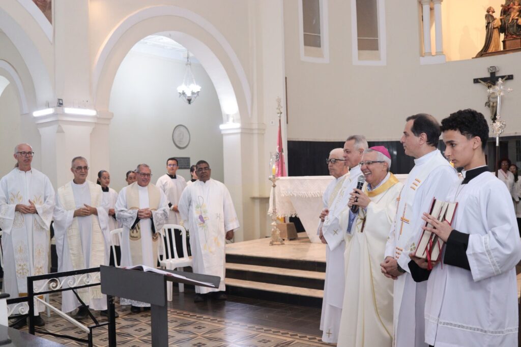 Nesta sexta-feira, 22 de agosto, em que nosso bispo diocesano, Dom Jeová Elias, celebrou 5 anos de episcopado e aniversário natalício, esse cuja data é neste domingo, 24 de agosto, ele presidiu Santa Missa em ação de graças no Santuário do Rosário, na cidade de Goiás. A celebração teve a participação de alguns padres, religiosas, lideranças pastorais, familiares e amigos. Foi um momento de muita alegria, mas também de emoção para Dom Jeová e os presentes. Ele se lembrou de sua nomeação, inclusive dos muitos motivos que tinha para dizer não, mas ele disse sim ao chamado da Igreja. O bispo comentou ainda as dificuldades da pandemia da covid-19, justamente o período em que ele foi nomeado e assumiu a Diocese de Goiás. Dom Jeová lembrou desse período como muito difícil, exigente e de aprendizado. “O que tiramos de lição desse período tão difícil que passamos?”, questionou ele. Por fim, o bispo se disse muito feliz e deu graças ao bom Deus pelo seu ministério. Após a Missa, aconteceu um momento fraterno na chácara do bispo.