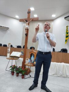 Após esse momento de espiritualidade, os participantes seguiram em uma piedosa peregrinação pelas ruas da cidade, rumo à Igreja Matriz Nossa Senhora das Graças. O trajeto foi animado por cânticos e marcado por quatro paradas para reflexão, que fortaleceram o espírito de comunhão e o propósito da caminhada.