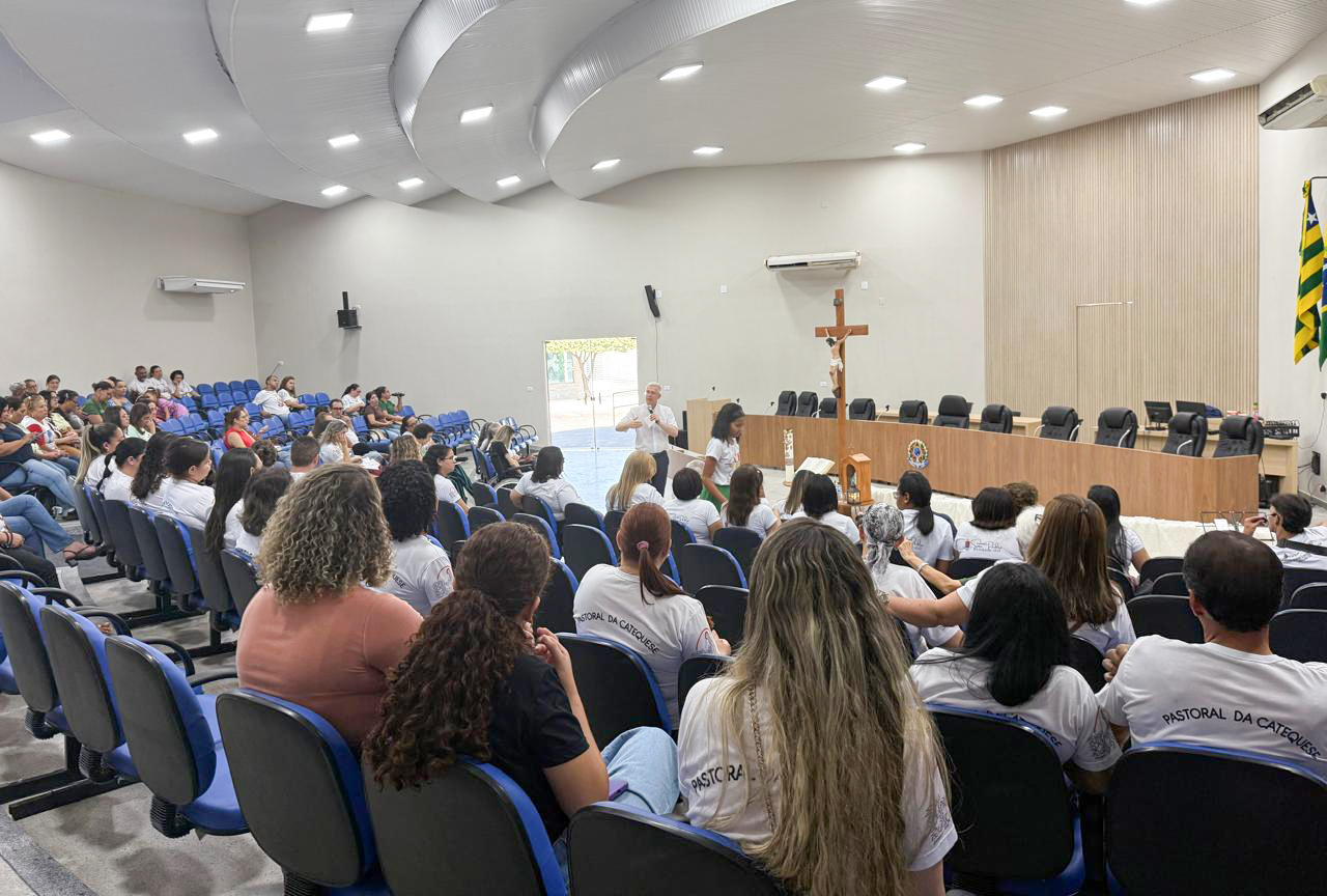 A jornada teve início no plenário da Câmara Municipal de Jussara, onde os catequistas foram acolhidos com orações e cantos. Na ocasião, nosso bispo, Dom Jeová Elias, conduziu uma profunda reflexão sob o tema “Catequistas, peregrinos e testemunhas da esperança”, inspirando a todos em sua missão evangelizadora. O pároco local, Pe. Leandro, também dirigiu palavras de encorajamento, falando sobre a beleza e a importância da vocação do catequista.