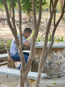 Inspirado pelo tema do fim de semana, o colaborador de pastoral do MAGIS Burnier, Daniel Romano, conduziu um momento orante a partir da Via Lucis, ajudando os jovens a “rezar a esperança”. Durante a oração, eles percorreram alguns espaços da chácara, passando por estações que apresentavam contemplações dos episódios a partir da Ressurreição de Jesus.