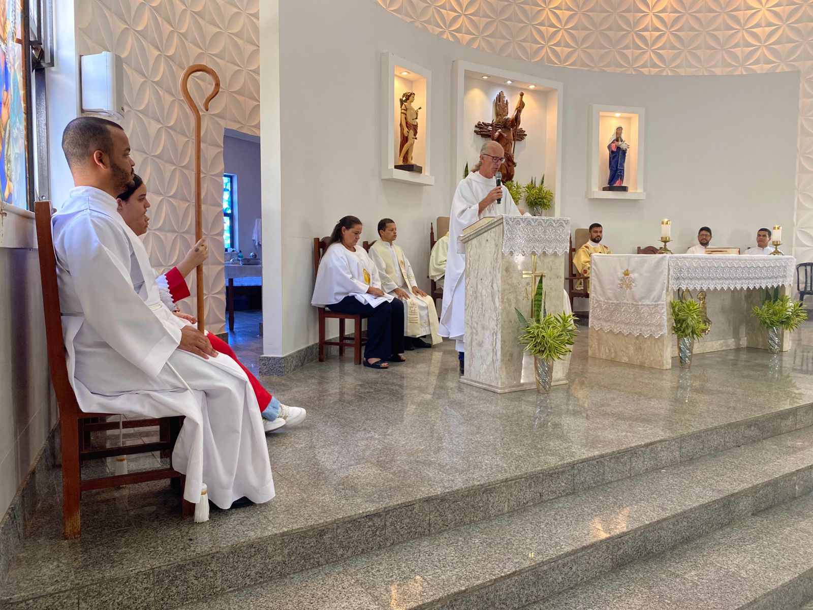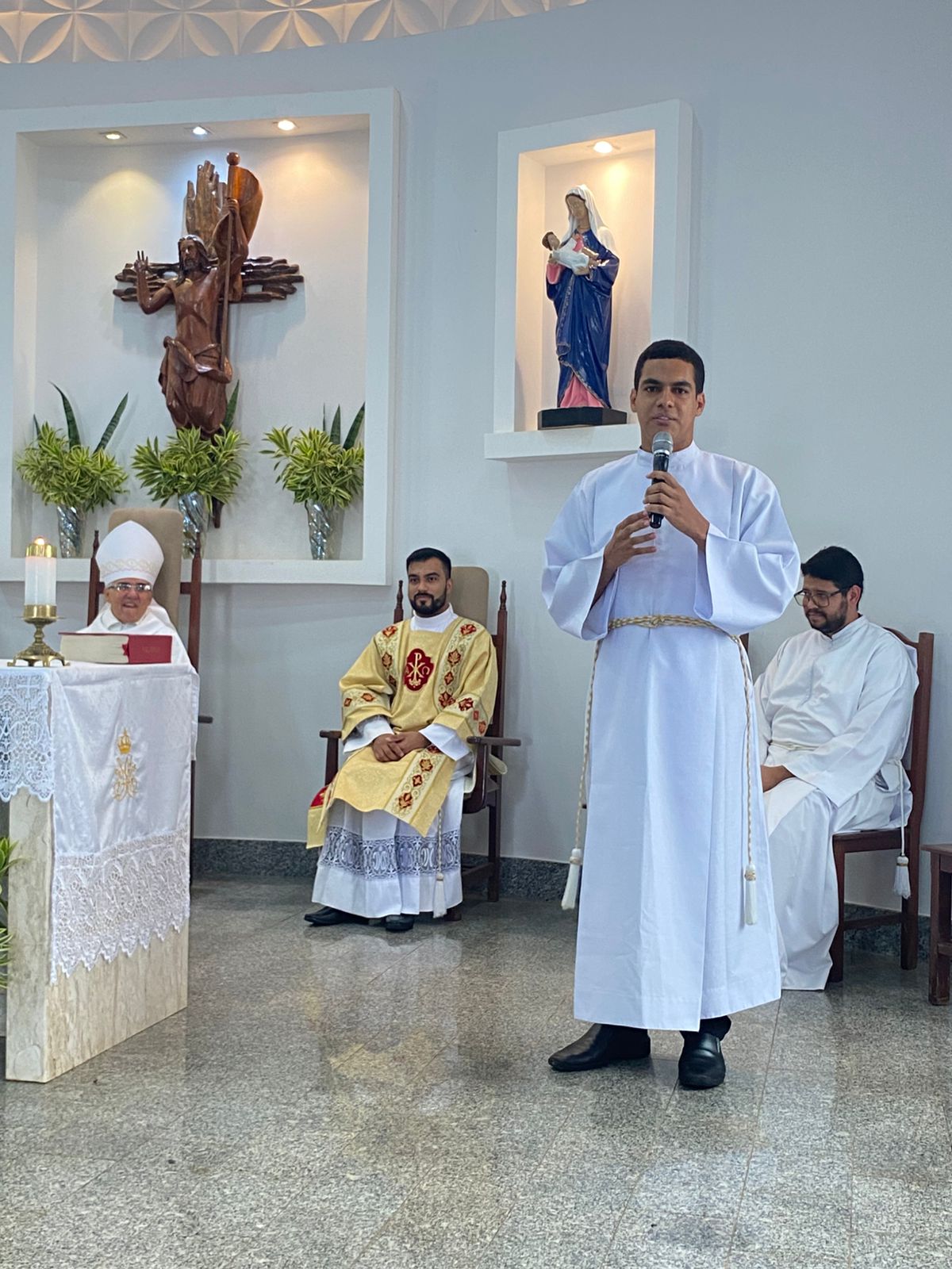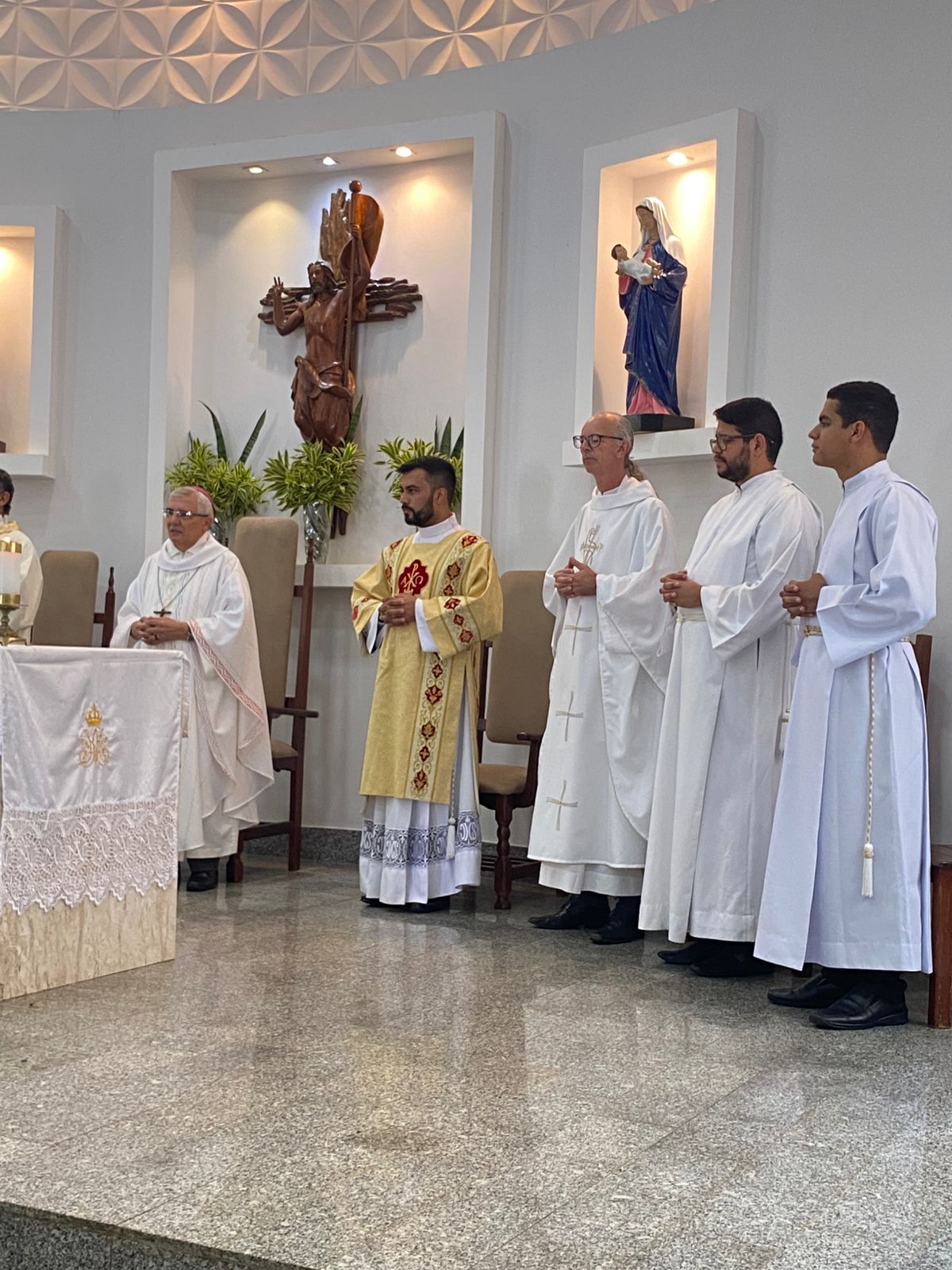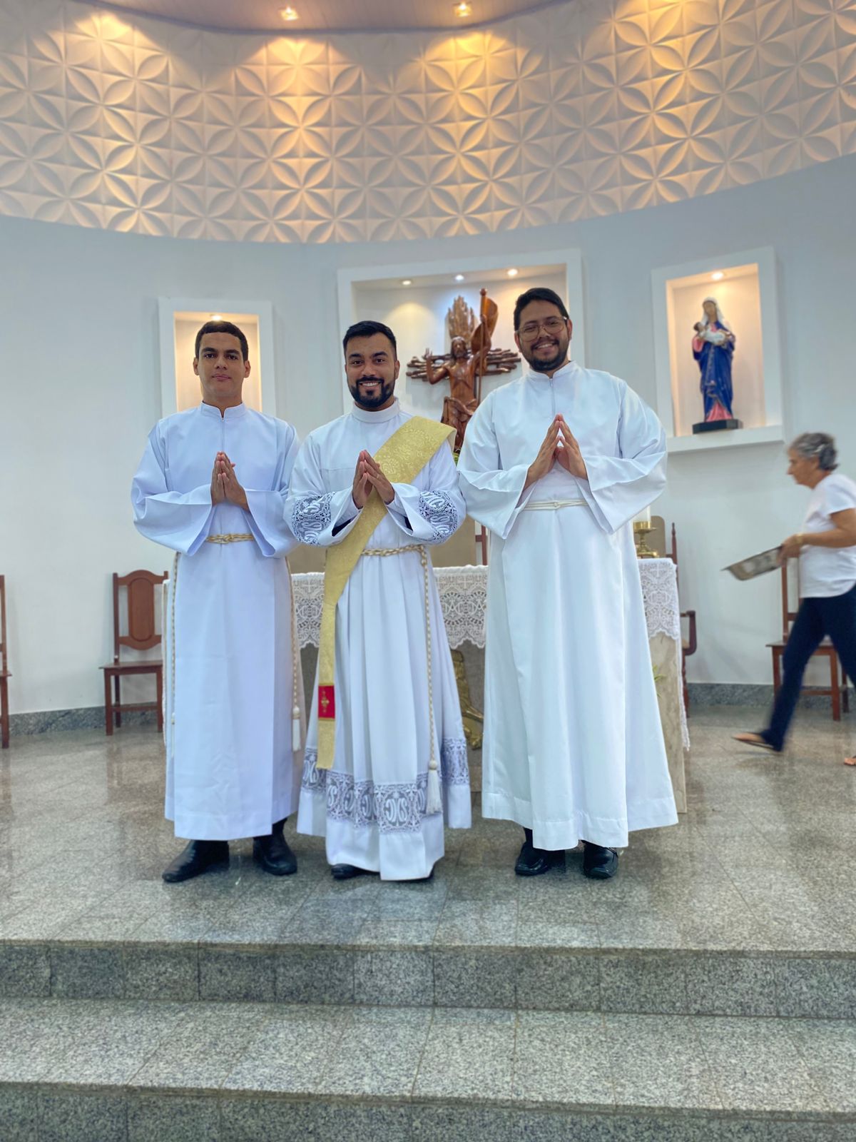 A celebração, cheia de graça e alegria, foi realizada na Paróquia Nossa Senhora D’Abadia, em Sanclerlândia (GO), e contou com a concelebração do Pe. Marques (pároco) e do Pe. Mauro, formador e reitor do seminário diocesano Escola do Evangelho. Também estiveram presentes os diáconos Henderson (Diocese de Jataí) e Leomar (Diocese de Goiás).