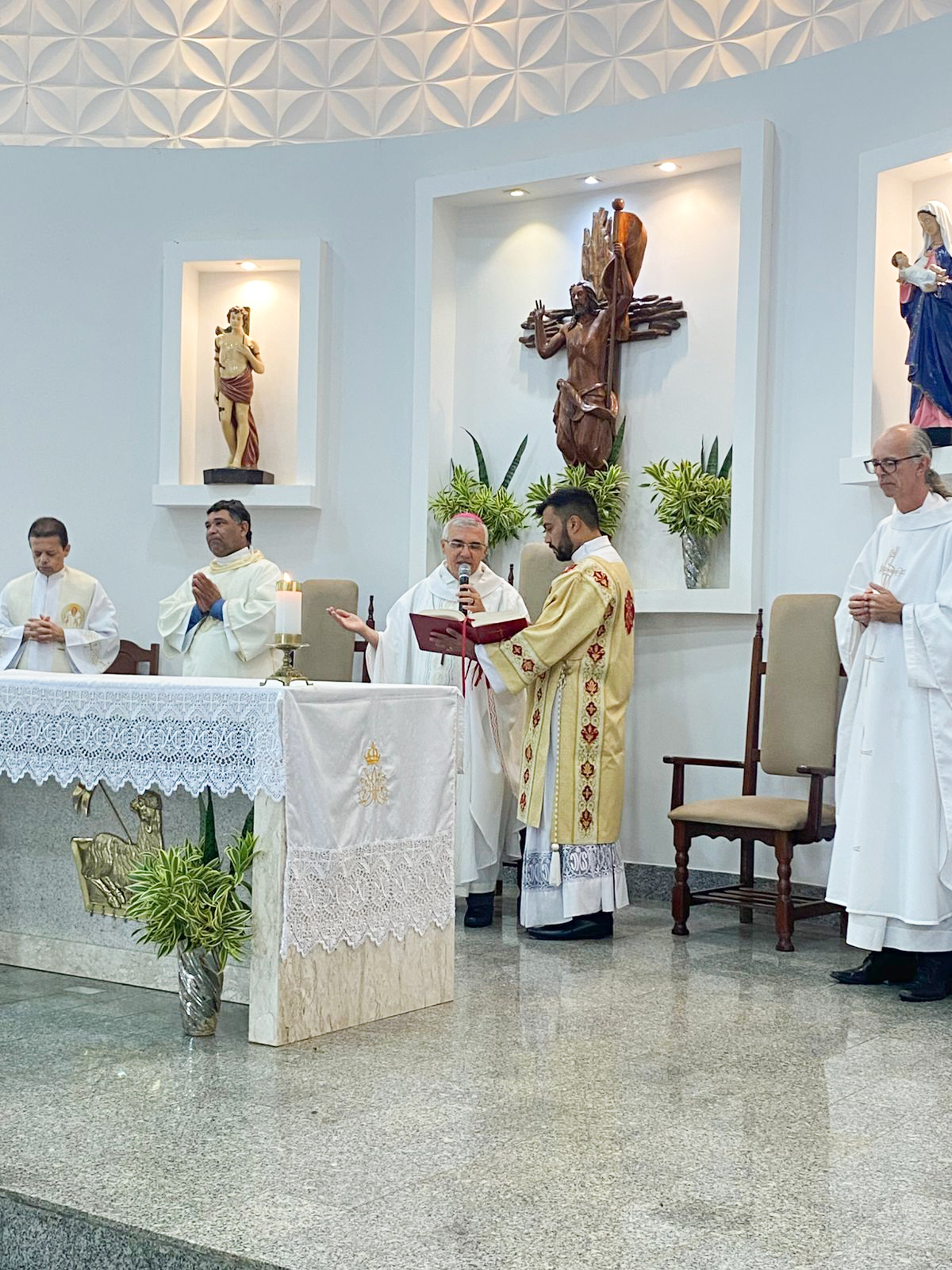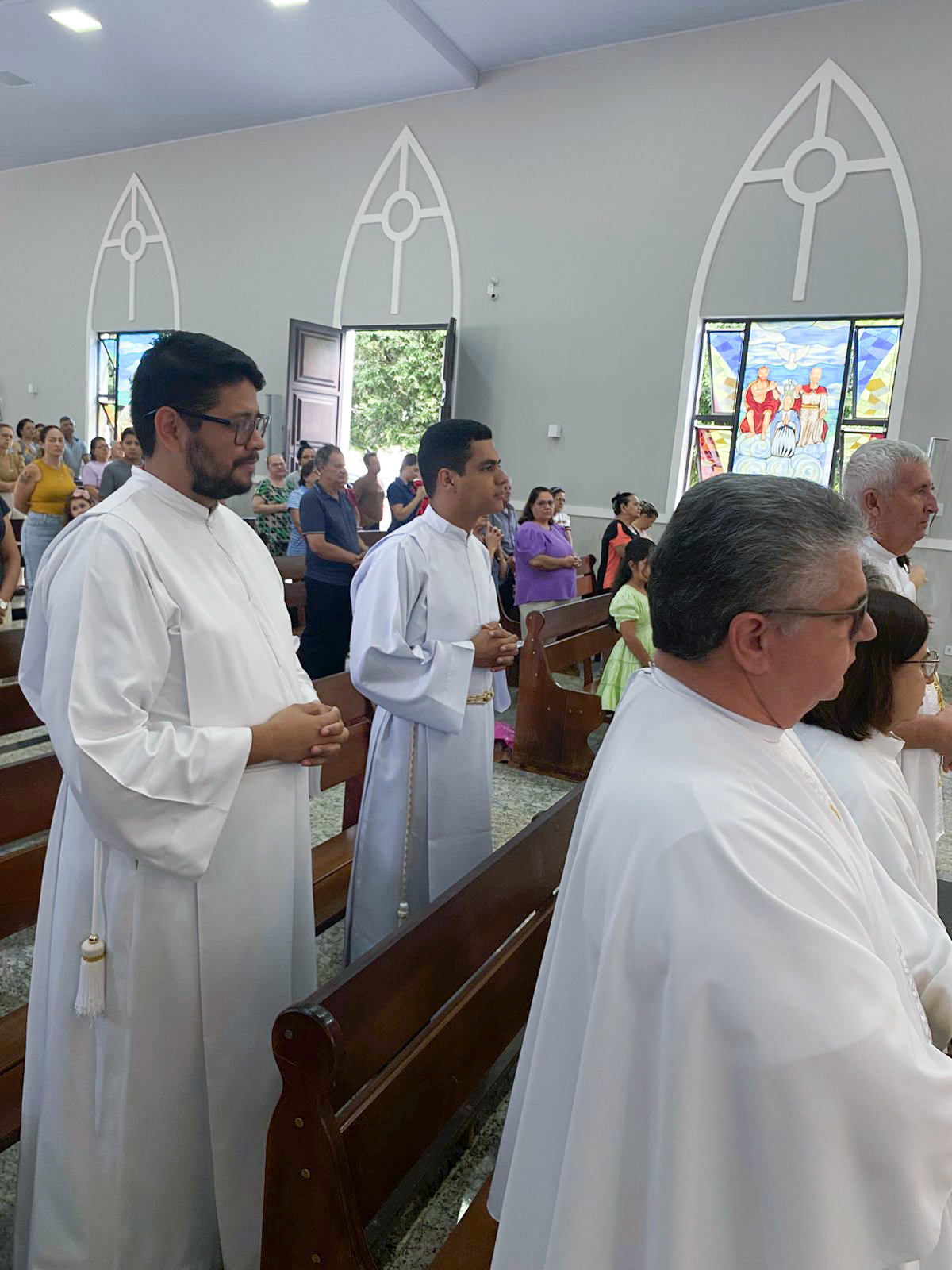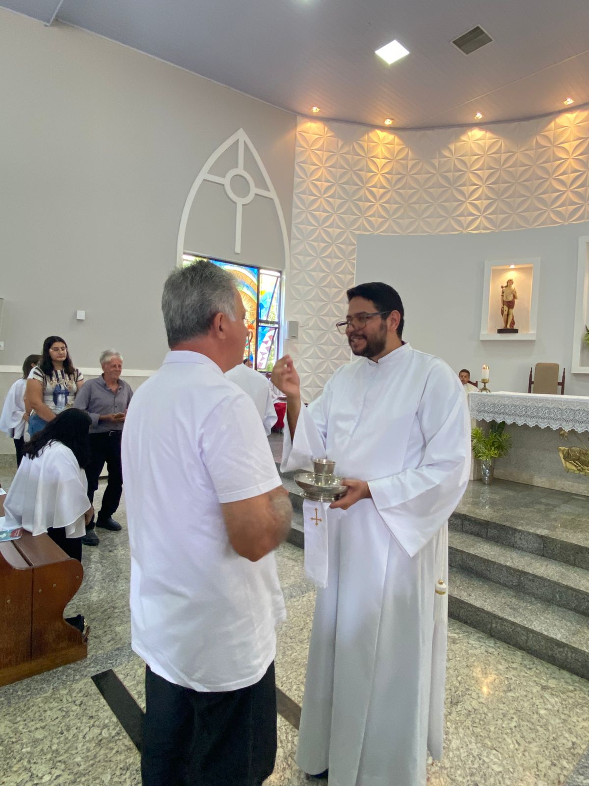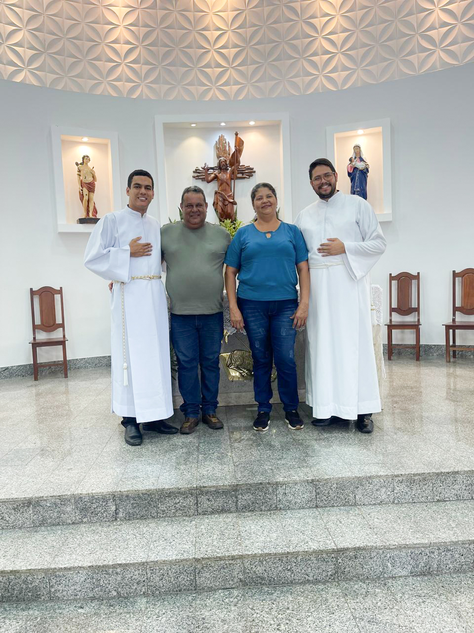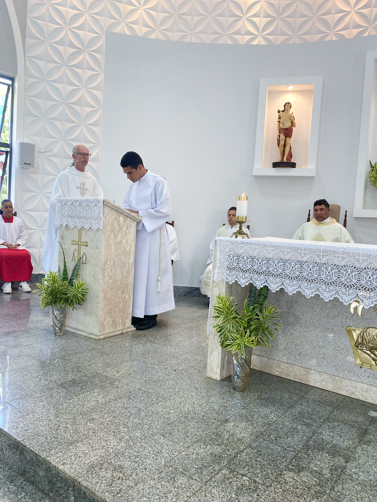 A celebração, cheia de graça e alegria, foi realizada na Paróquia Nossa Senhora D’Abadia, em Sanclerlândia (GO), e contou com a concelebração do Pe. Marques (pároco) e do Pe. Mauro, formador e reitor do seminário diocesano Escola do Evangelho. Também estiveram presentes os diáconos Henderson (Diocese de Jataí) e Leomar (Diocese de Goiás).