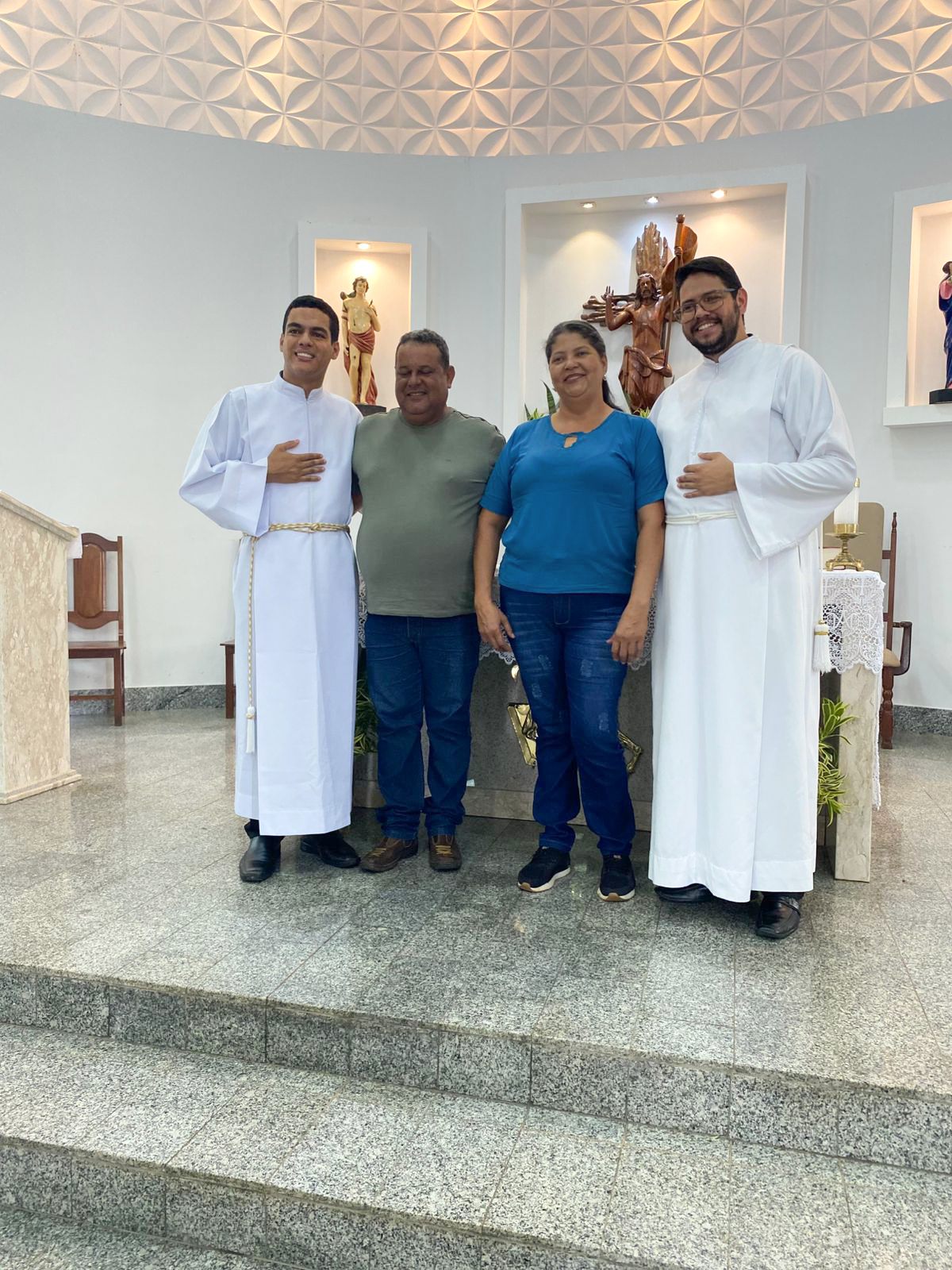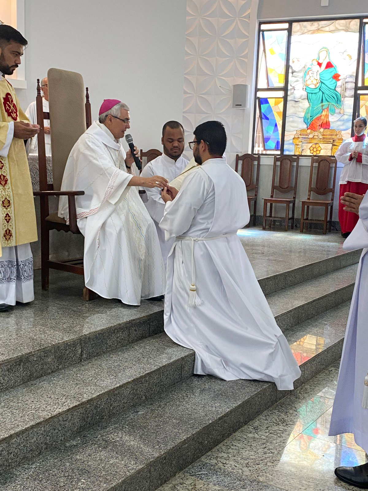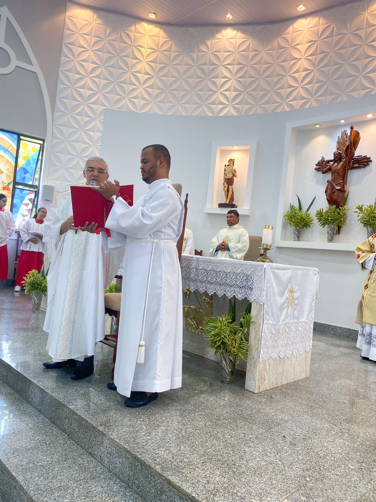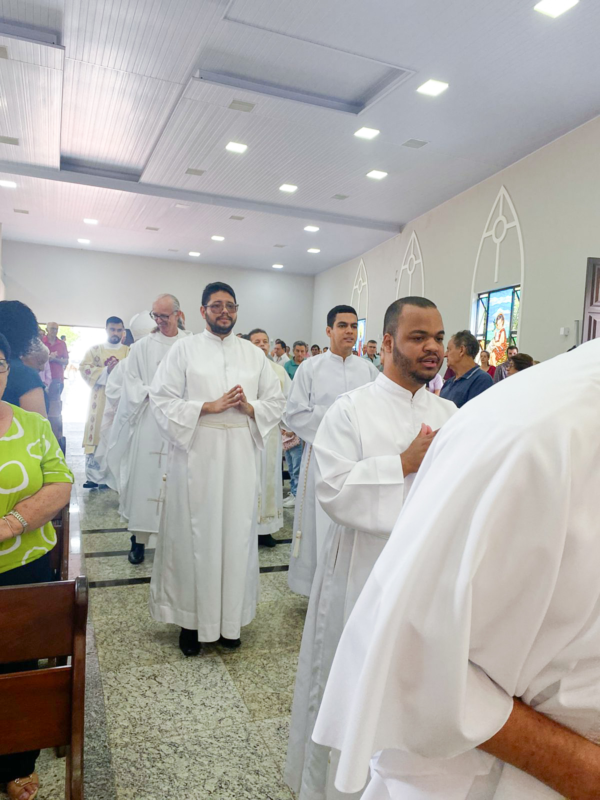 A celebração, cheia de graça e alegria, foi realizada na Paróquia Nossa Senhora D’Abadia, em Sanclerlândia (GO), e contou com a concelebração do Pe. Marques (pároco) e do Pe. Mauro, formador e reitor do seminário diocesano Escola do Evangelho. Também estiveram presentes os diáconos Henderson (Diocese de Jataí) e Leomar (Diocese de Goiás).