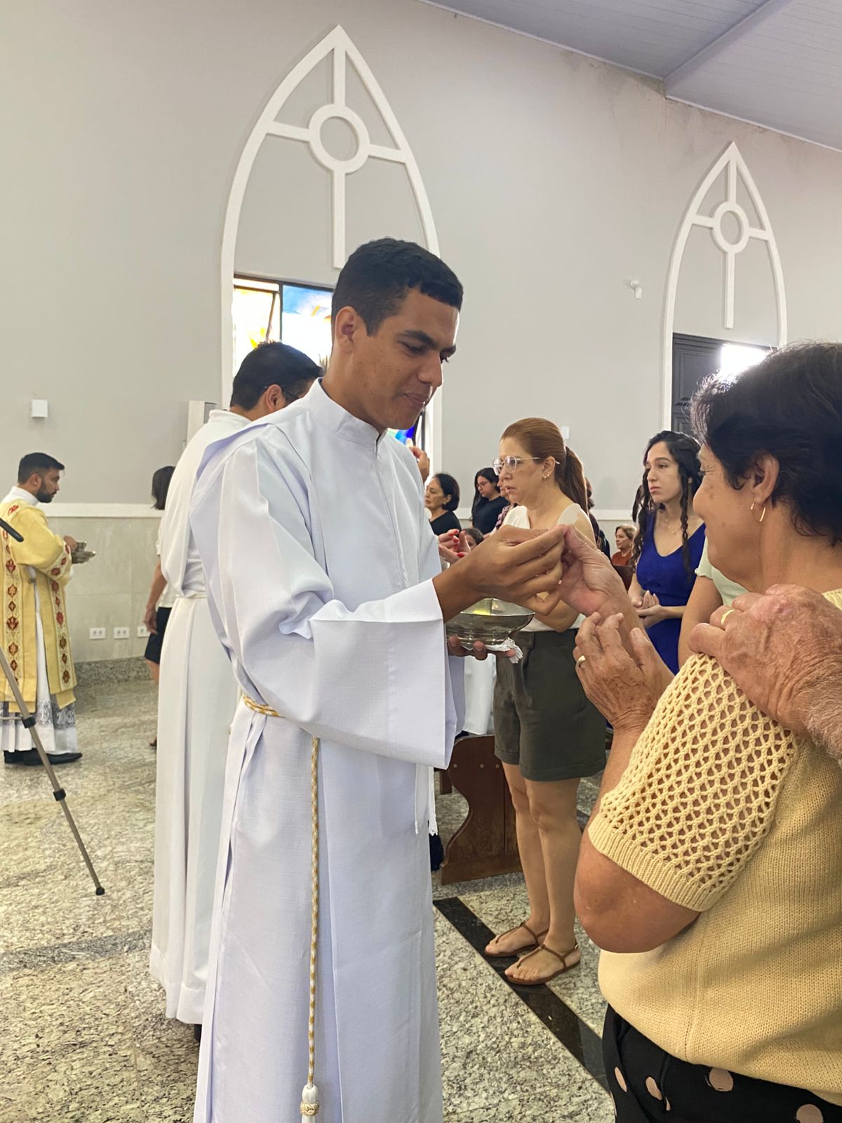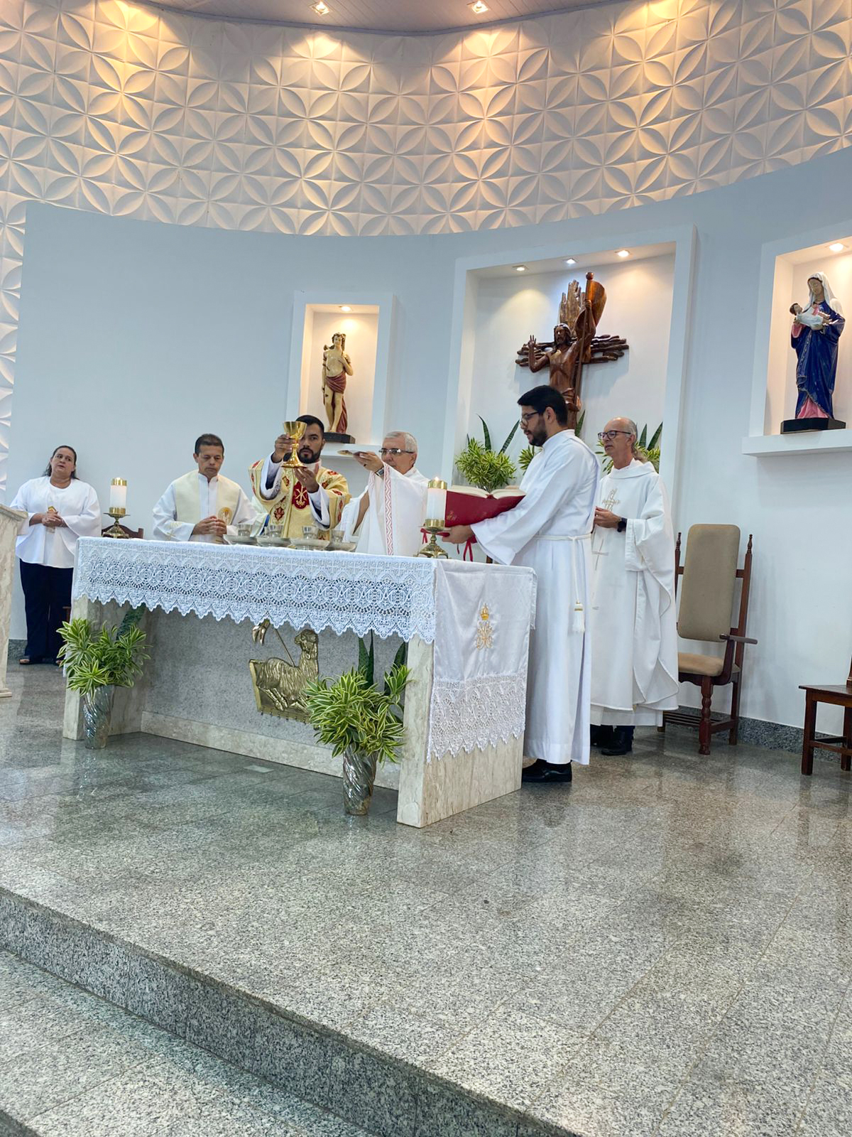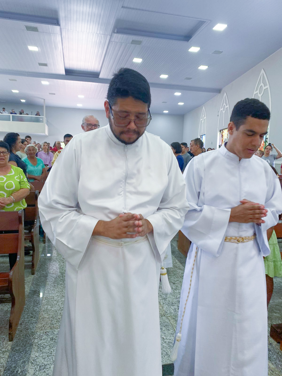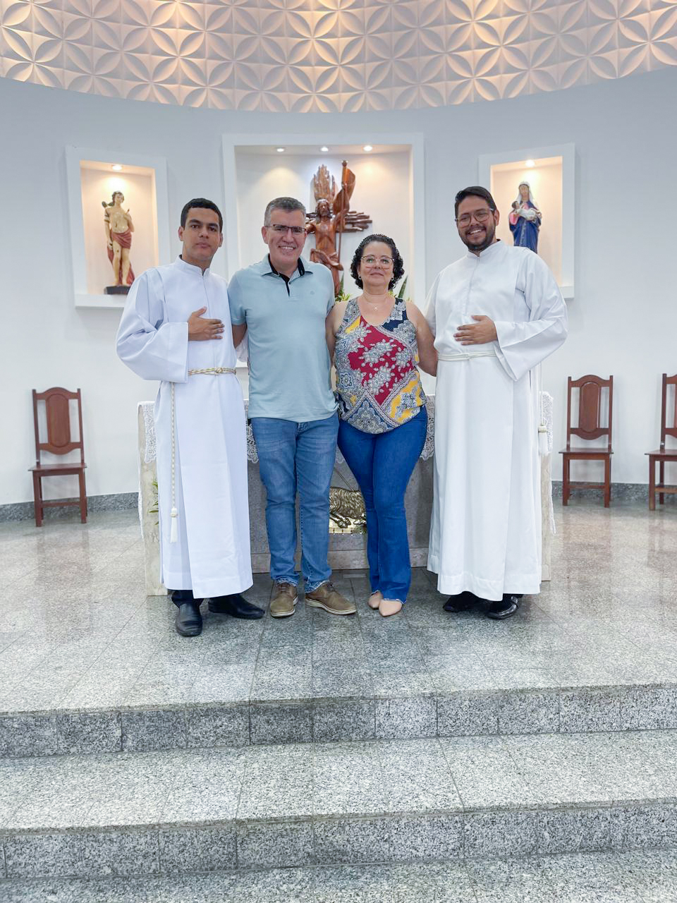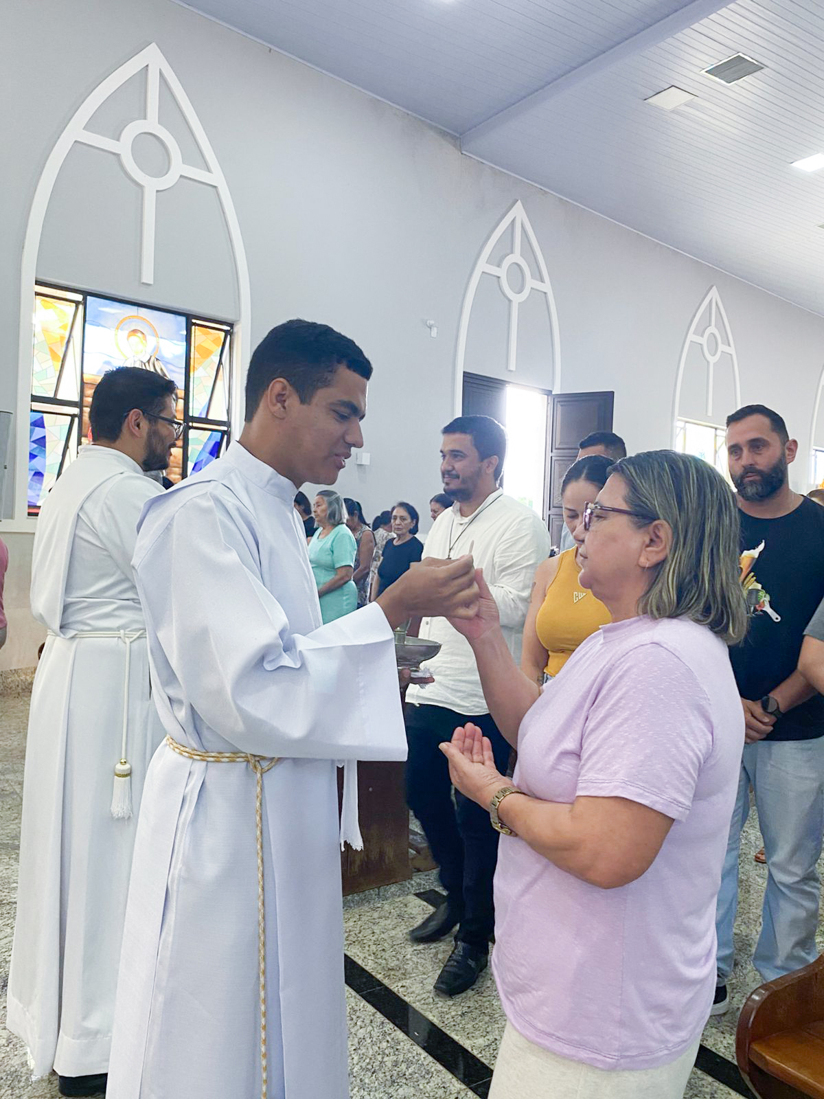A celebração, cheia de graça e alegria, foi realizada na Paróquia Nossa Senhora D’Abadia, em Sanclerlândia (GO), e contou com a concelebração do Pe. Marques (pároco) e do Pe. Mauro, formador e reitor do seminário diocesano Escola do Evangelho. Também estiveram presentes os diáconos Henderson (Diocese de Jataí) e Leomar (Diocese de Goiás).