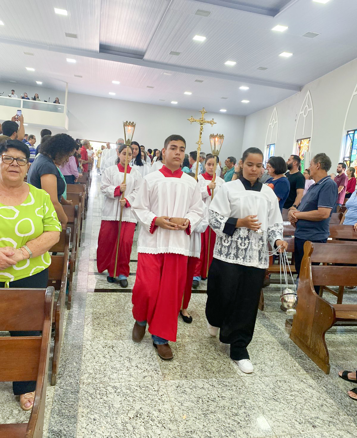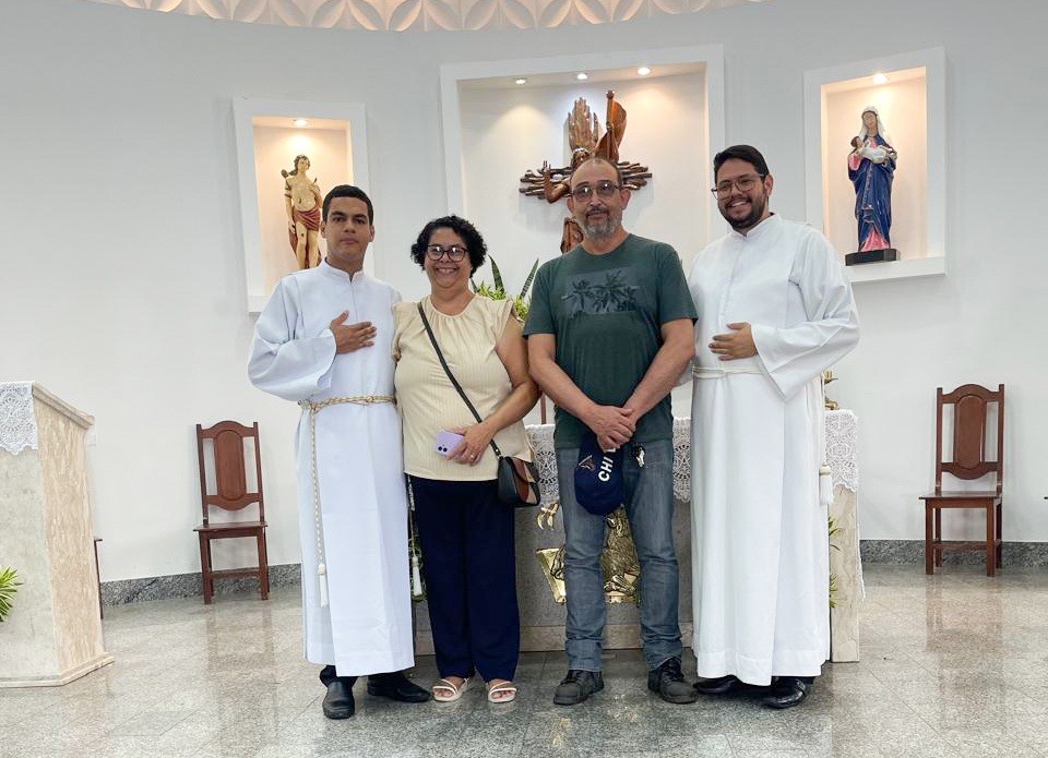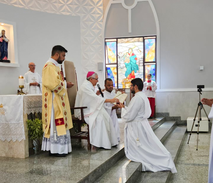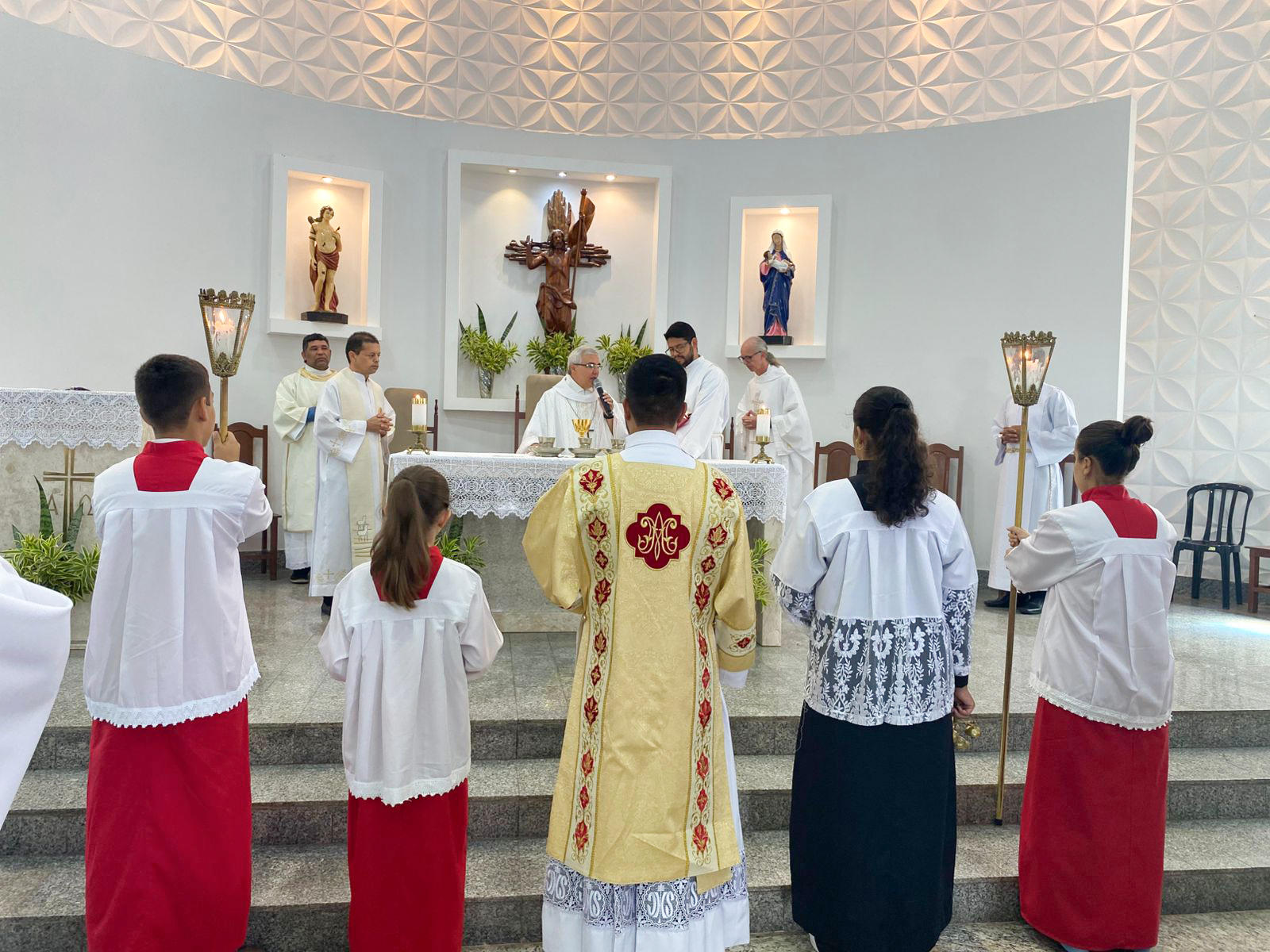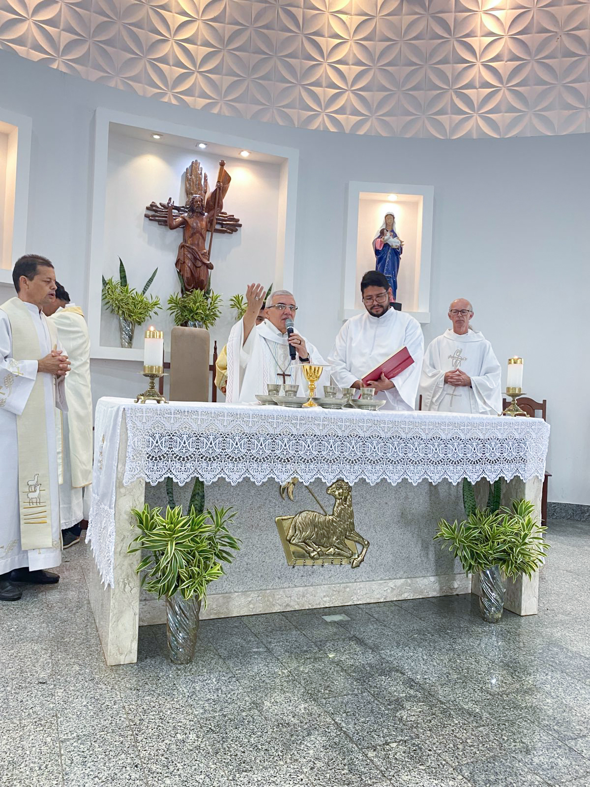 A celebração, cheia de graça e alegria, foi realizada na Paróquia Nossa Senhora D’Abadia, em Sanclerlândia (GO), e contou com a concelebração do Pe. Marques (pároco) e do Pe. Mauro, formador e reitor do seminário diocesano Escola do Evangelho. Também estiveram presentes os diáconos Henderson (Diocese de Jataí) e Leomar (Diocese de Goiás).